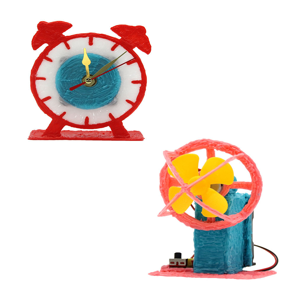 3D打印筆造電子造物套件適合幼兒園大班至小學(xué)六年級(jí)的學(xué)生綜合實(shí)踐課、STEAM創(chuàng)客教育和課外興趣班使用,學(xué)生原來(lái)設(shè)計(jì)打印筆手工作品都是在外觀造型上進(jìn)行設(shè)計(jì),而3D打印筆電子造物套件是通過(guò)電子元器件,例如:振動(dòng)電機(jī)、迷你電機(jī)、LED燈、直流電機(jī)、開(kāi)關(guān)、電池盒、干電池等以及其他配件與原有的3D打印筆外觀設(shè)計(jì)進(jìn)行造物結(jié)合,使得每個(gè)作品都是可以互動(dòng)的,大大增強(qiáng)了3D打印筆造物的趣味性,從而培養(yǎng)學(xué)生的創(chuàng)造力、空間想象能力、動(dòng)手能力等各方面的能力。