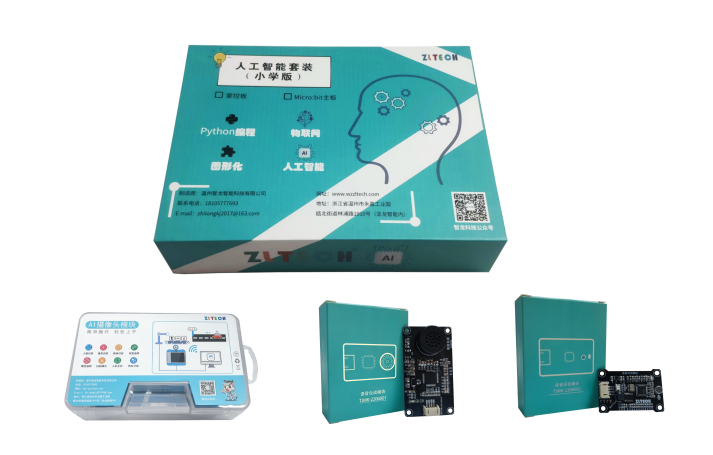 本人工智能套裝(小學版)可適用于浙江省小學信息技術(shù)課程,亦可用于開展小學高年段科技拓展課程,可同時使用圖形化和python語言進行編程。